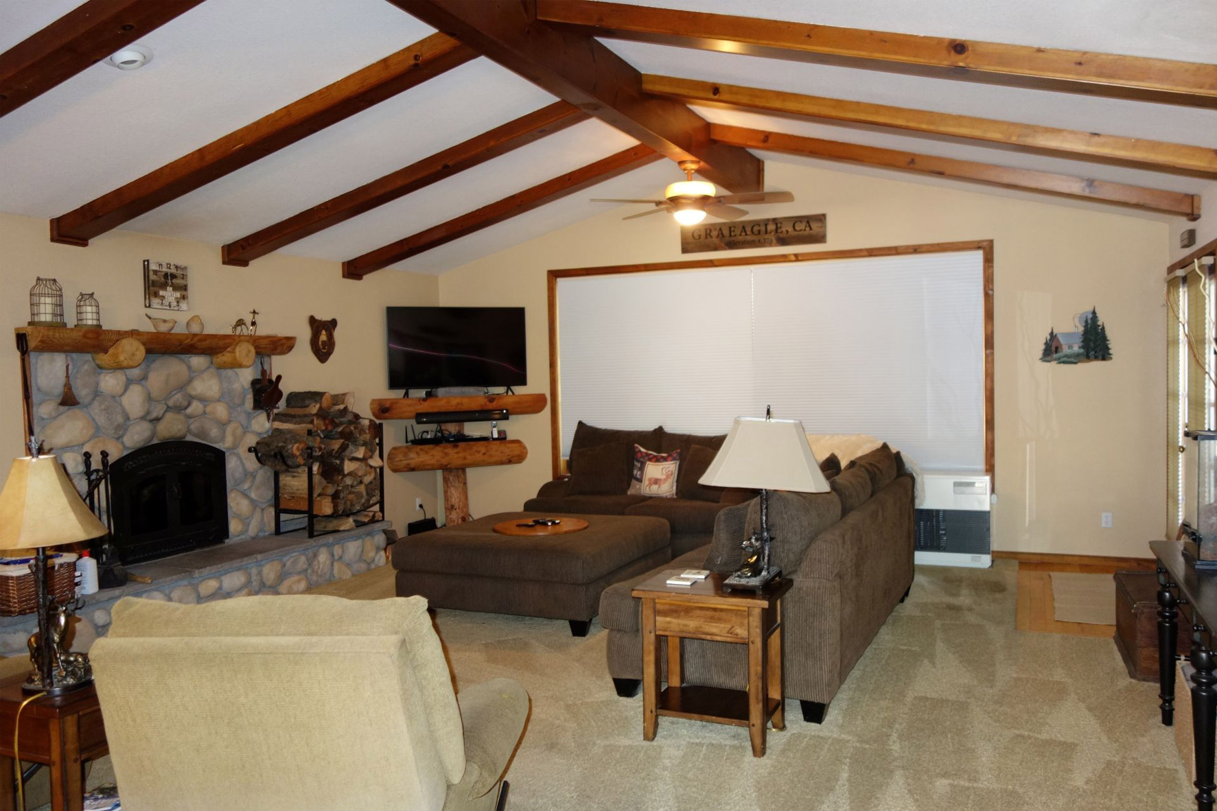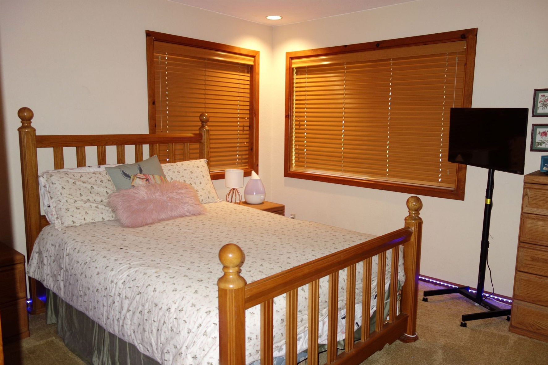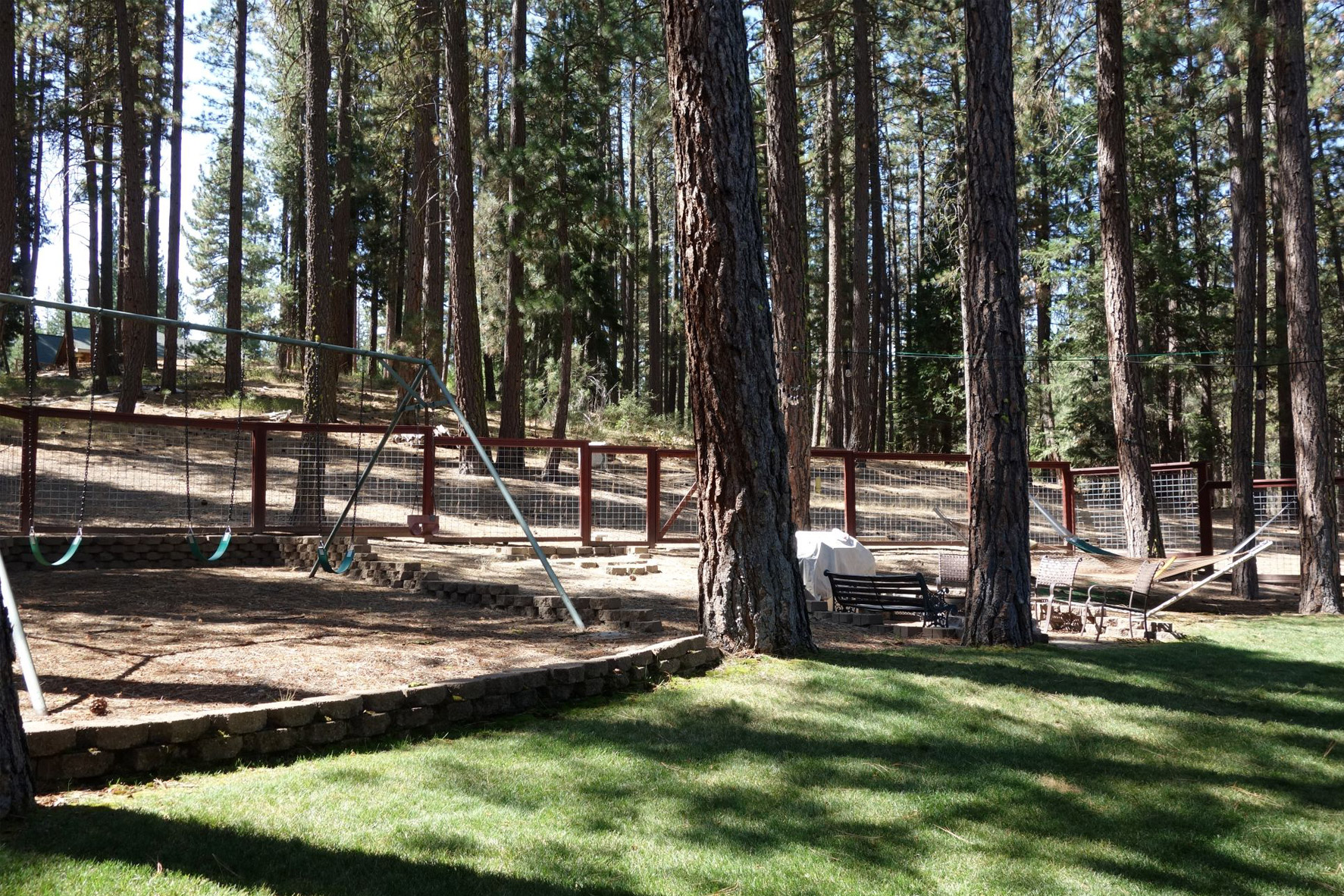This charming home in Goldridge Estates features 4 bedrooms, 3 bathrooms, portable air conditioner, streaming TVs, large deck, propane barbecue, outdoor furniture, swing set, tether ball, hammock, fire pit, non smoking, pets allowed, 1 story.