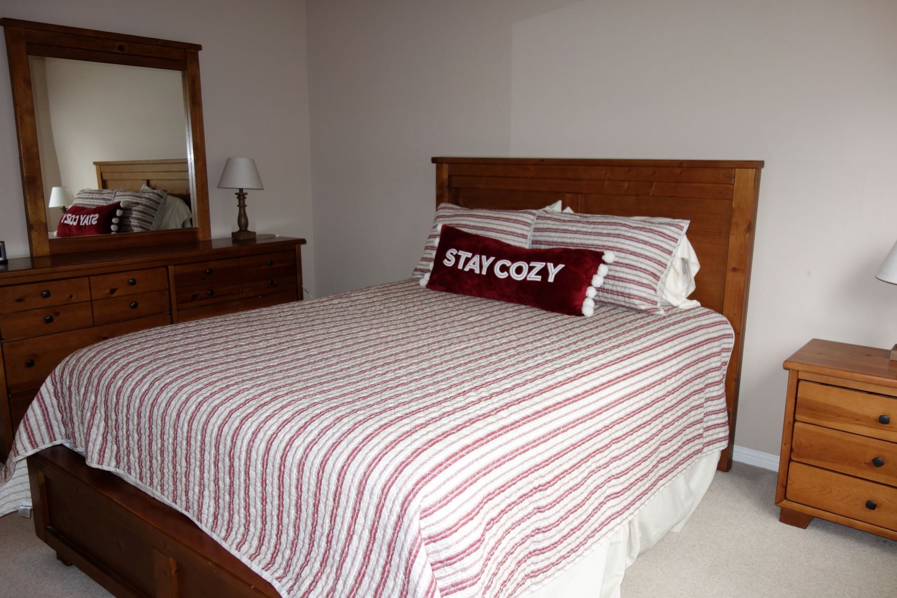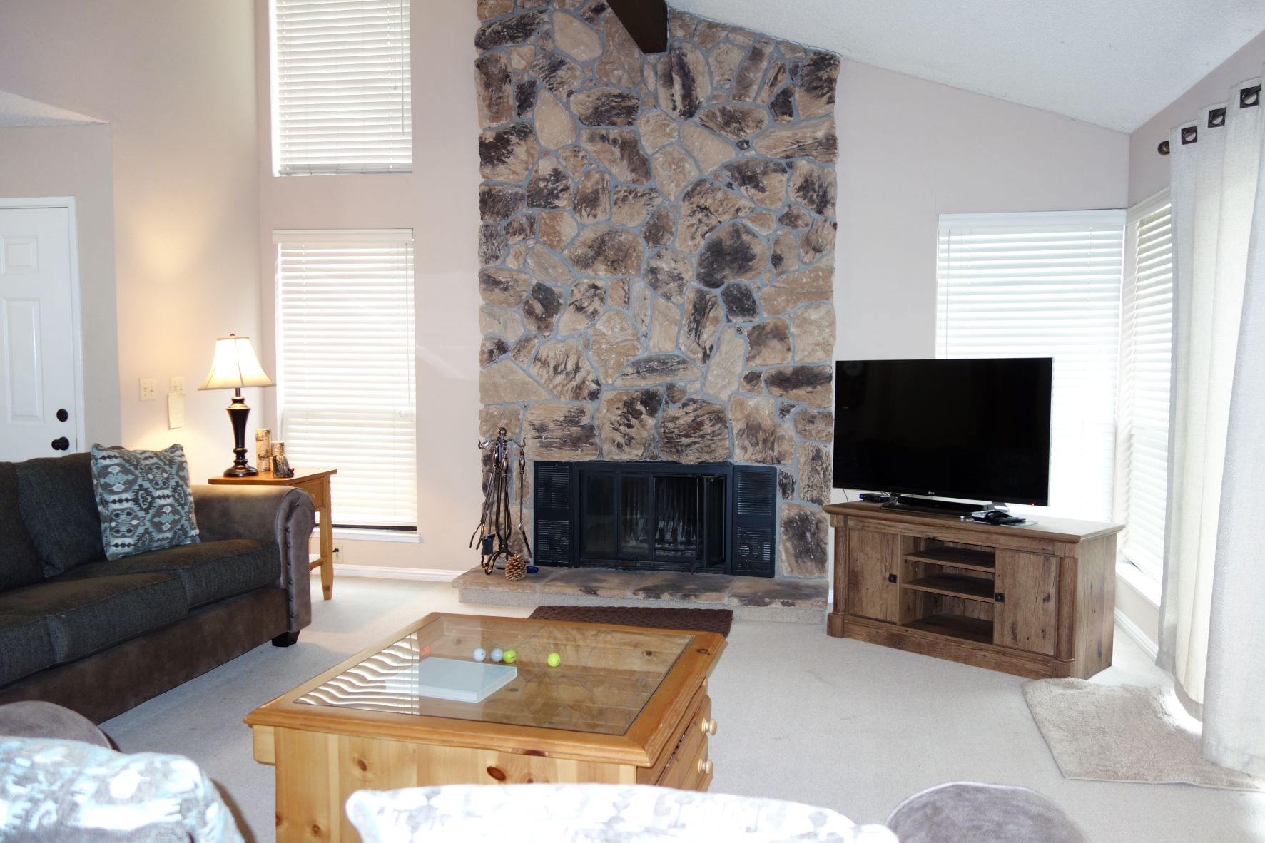 Beds: King, Queen, Queen, 2 Singles. Washer & Dryer, Direct TV, Indoor Fireplace, Non Smoking, Propane BBQ, Deck/ Outdoor furniture, Golf Course View
